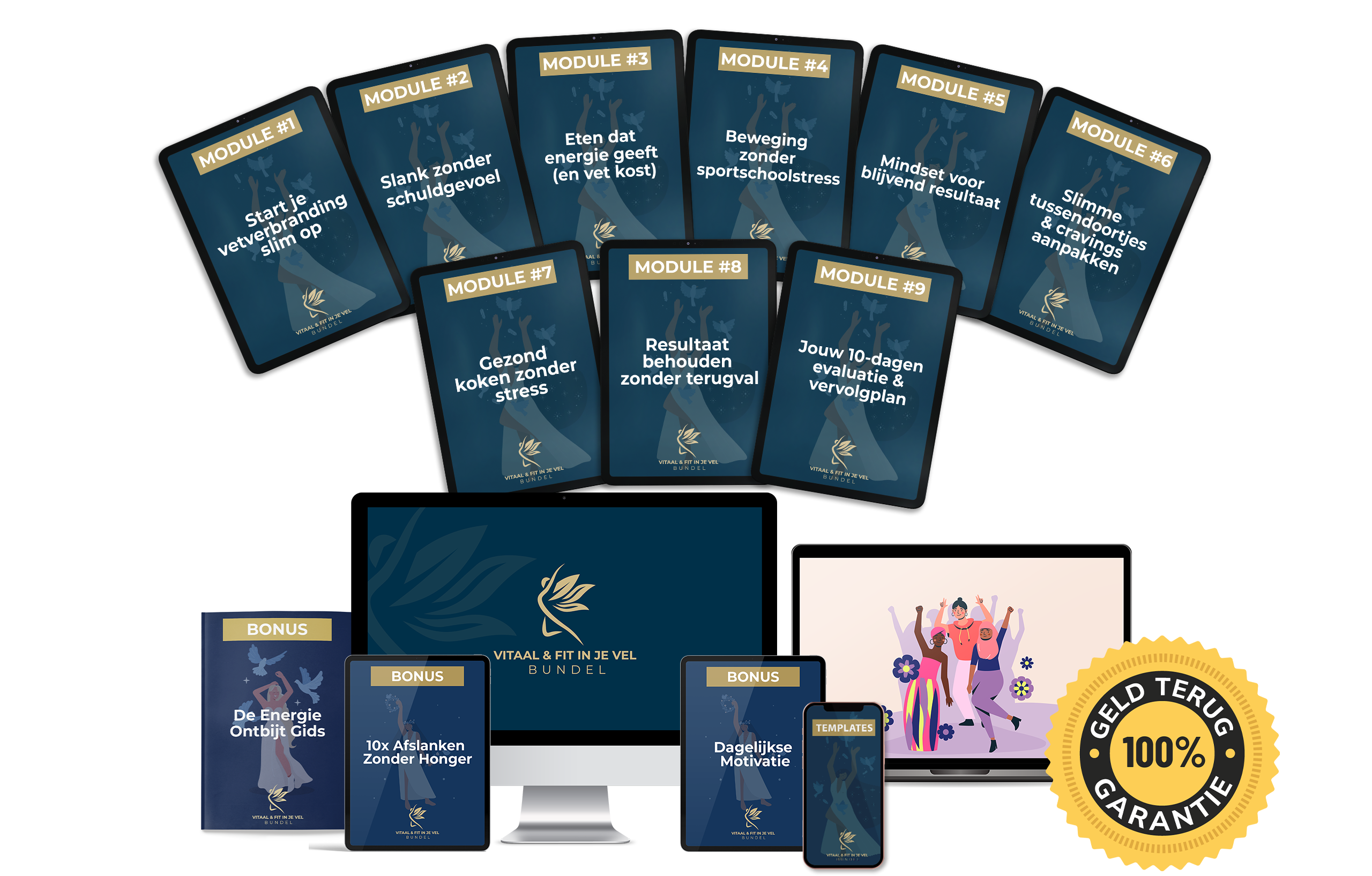 Omdat dit een testfase is en ik je graag wil laten kennismaken met mijn aanpak, kun je nu voor een mini-investering starten. Je krijgt de volledige Vitaal & Fit in je Vel Bundel – bomvol praktische tools, recepten en tips – zodat je zelf kan ervaren wat dit voor jou doet.