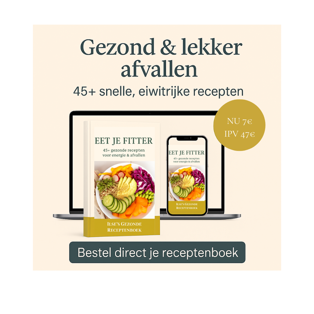 “Ik dacht altijd dat ‘gezond koken’ ingewikkeld moest zijn. Dankzij Ilse’s receptenboek ben ik 3kg kwijt zonder stress.” — Sara, NL